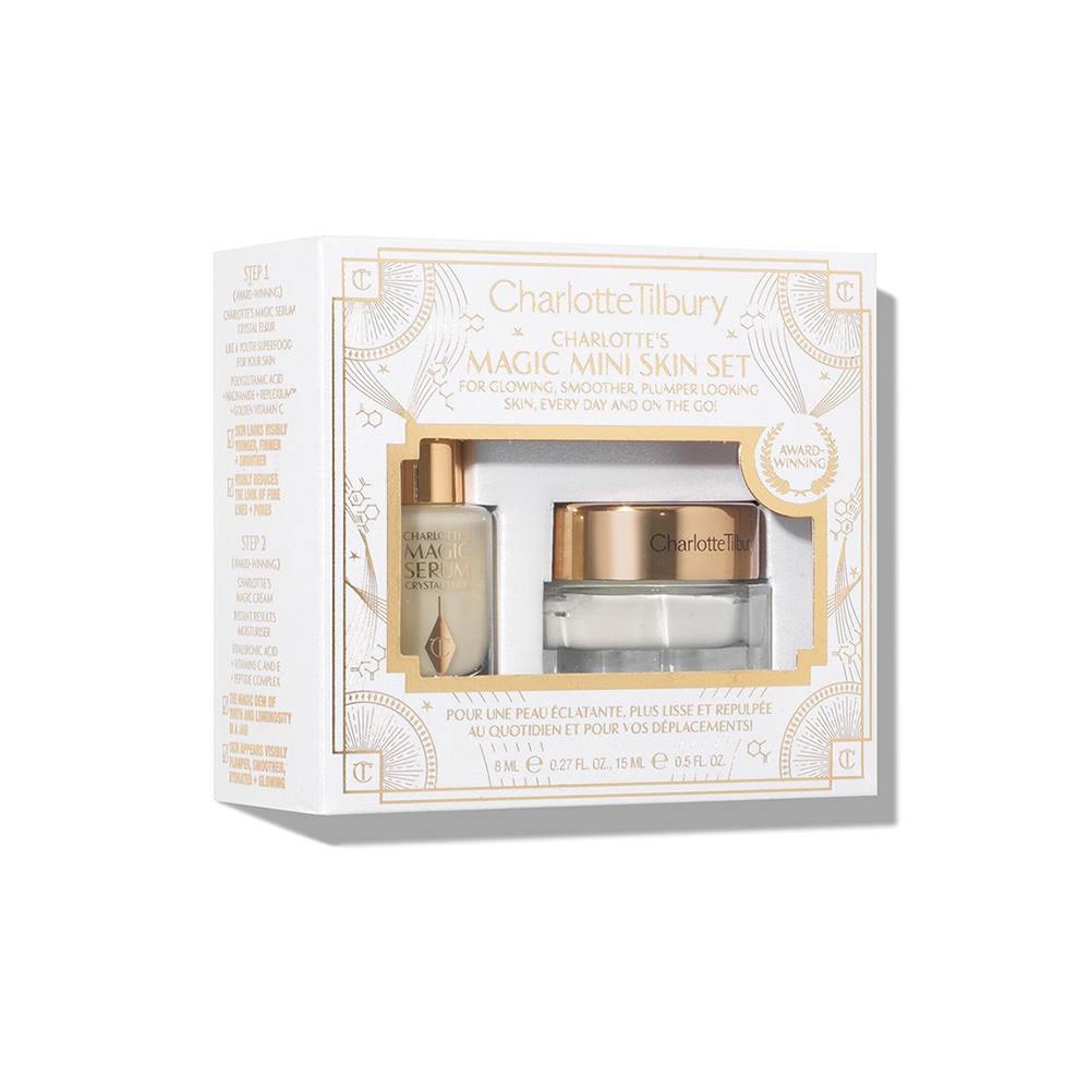Discover the secret to a glowing skin with the Charlotte Tilbury Charlotte’s Iconic Magic Skin Duo, a skin set featuring a moisturiser and serum to help leave a brighter more youthful look.