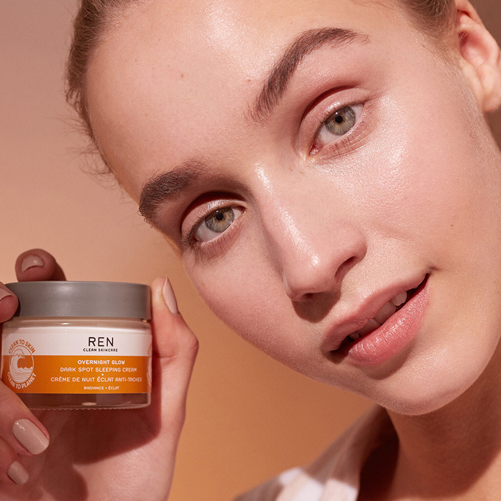 Achieve a glowing complexion with the Ren Clean Skincare Overnight Glow Dark Spot Sleeping Cream, a skincare treatment that helps to reduce the appearance of dark spots. This rich night cream has been specifically formulated to work while skin sleeps.
